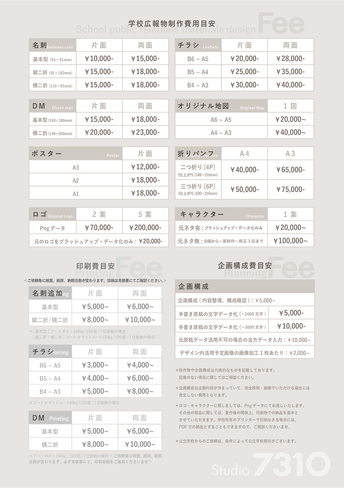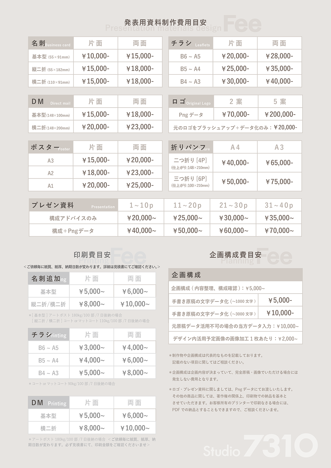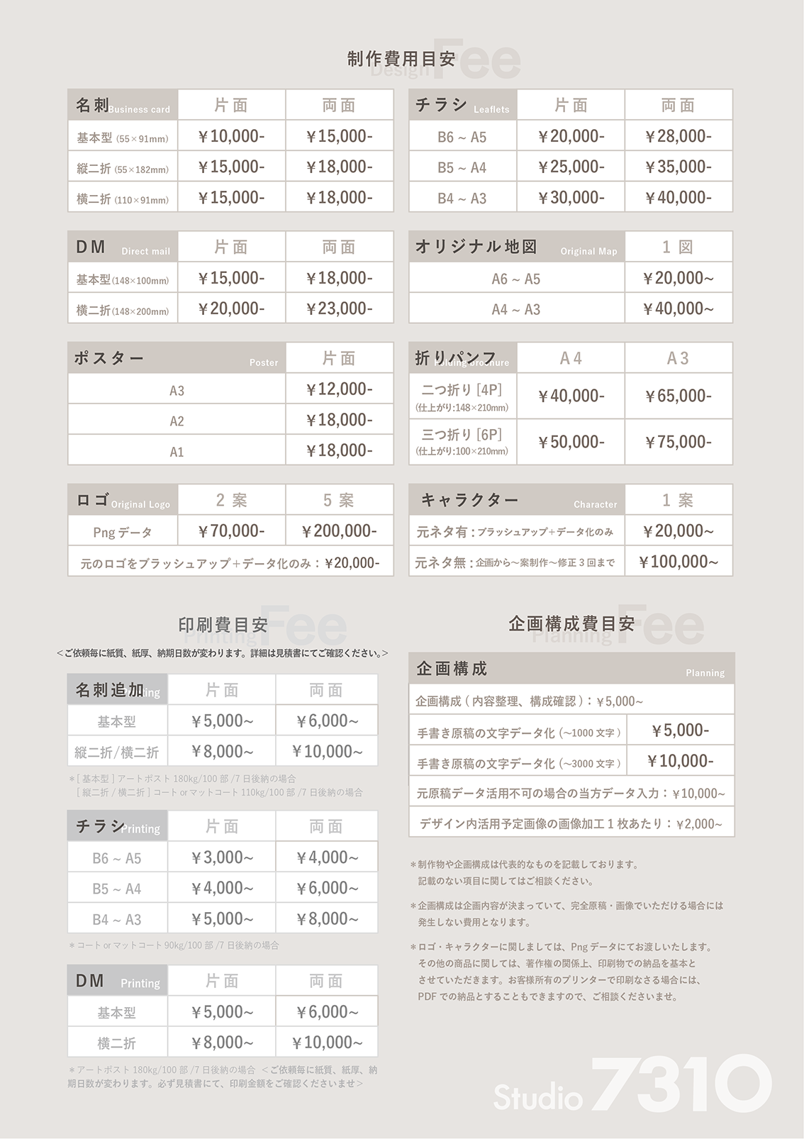 両面:¥15,000~